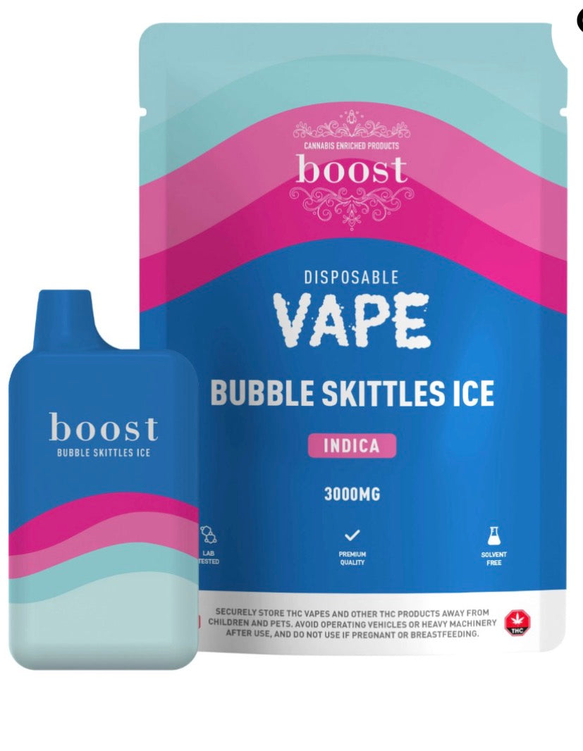 The Boost Cannabis Bubble Skittles Ice Disposable Vape Pen is a convenient and easy-to-use device for enjoying your favorite cannabis strains on the go. It is a disposable pen, meaning that it is designed for single use and can be discarded once the product is finished. The Bubble Skittles Ice Disposable Vape Pen features a high-quality ceramic heating element, which vaporizes the cannabis oil to produce a smooth and flavorful hit.